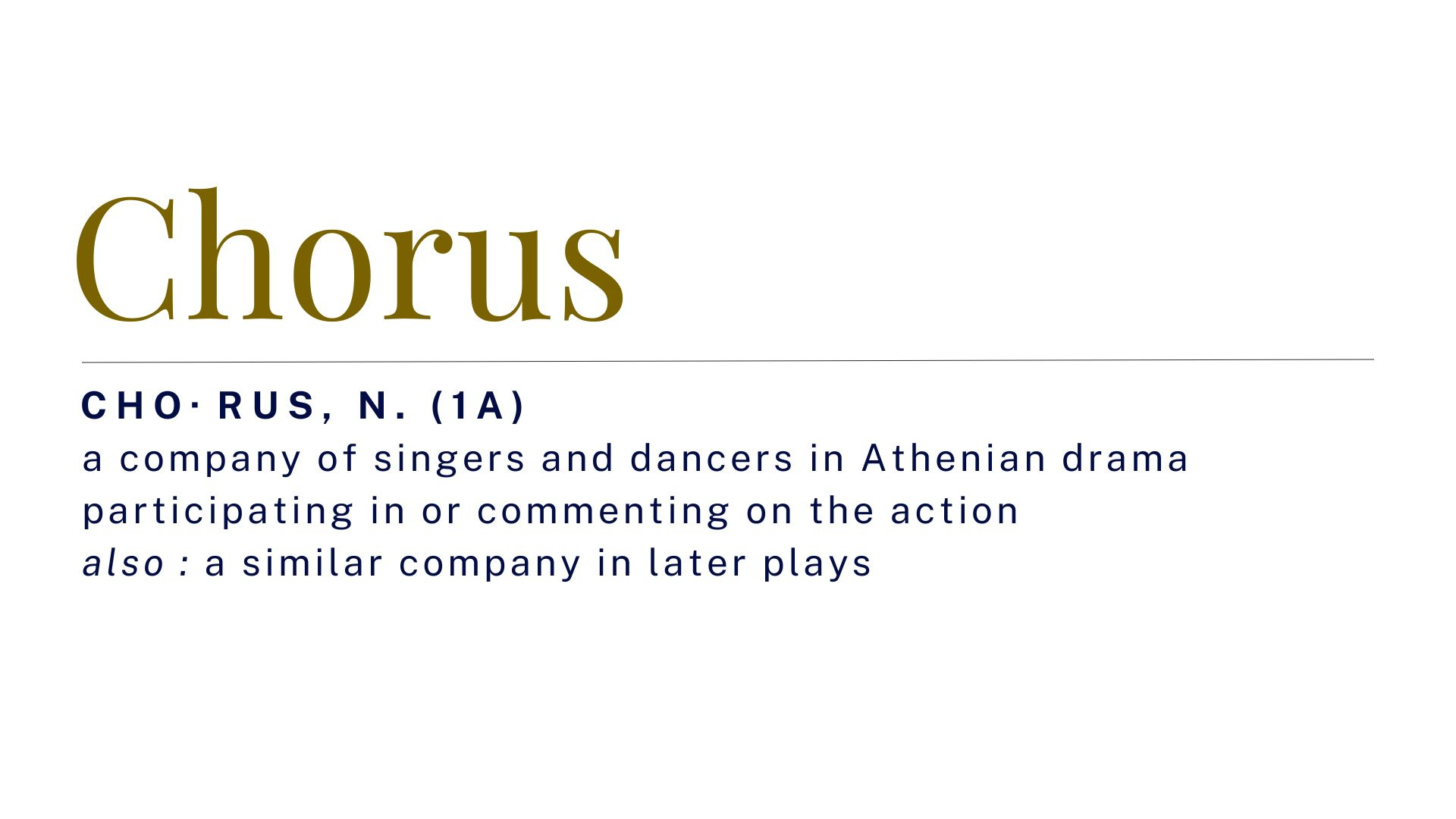 Note here that, in opera, the term “chorus” does not simply describe a large group of singers who join in for major musical numbers. Rather, it refers to the members of the chorus who comment the action at hand and the overall working of the plot.
